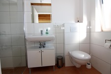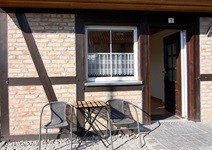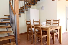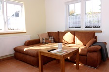 Wohnzimmer mit Schlafcouch (1,20 x 2,00 m Liegefläche) kleine Küche, Bad im Erdgeschoß