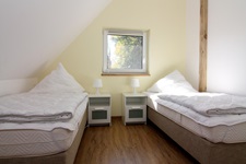2 Schlafzimmer im Obergeschoß (Doppelbett 1,60 x 2,00m und 2 Einzelbetten 0,90 x 2,00m)